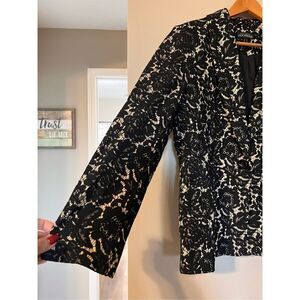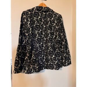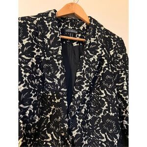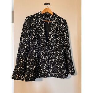 Susan Graver Occasions Size 14 Lace Fusion Print Blazer Jacket Black White Work