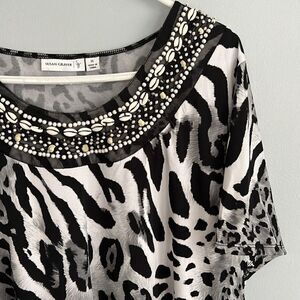 Susan Graver Women’s XL Animal leopard print w/ shells scoopneck blouse