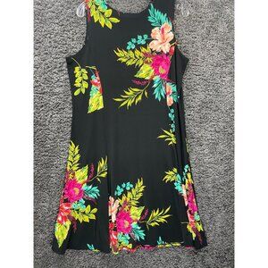 Susan Graves Sundress Women's Medium Black Floral Polyester Stretch Sleeveless.
