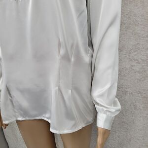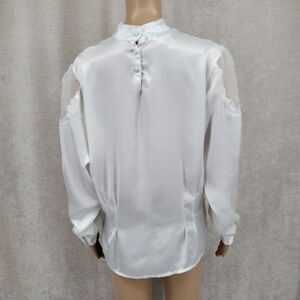 Susan Hutton Vintage White Satin Sheer Mesh Long Sleeve Blouse Women's Plus Size