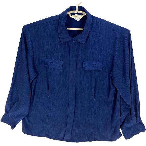 Susan Hutton Womens Top Blouse Plus 20W Blue Classic Minimalist Neutral Office