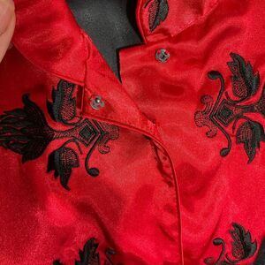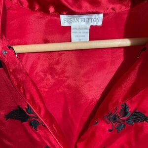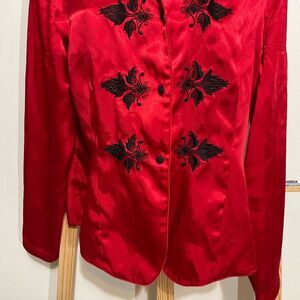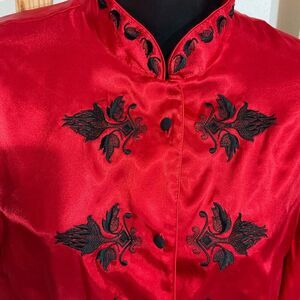 Susan Hutton button down embroidered Blouse red polyester top size 8/M