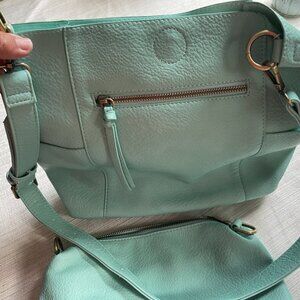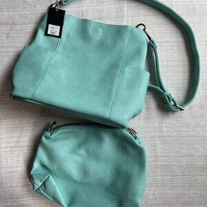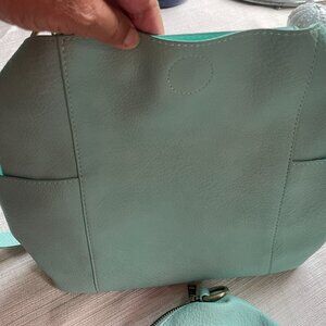 Two bags in one with pebble grain texture in a fun aquamarine color.