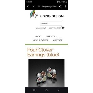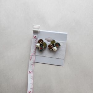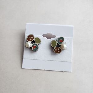 Susan Kinzig Design Four Clover Earrings Blue Clay & Pearl Post Back 925 Silver