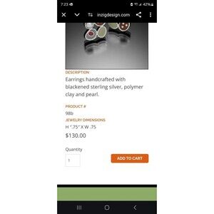 Earrings handcrafted with blackened sterling silver, polymer clay and pearl.