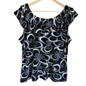 Susan Lawrance Sleeveless Top Tank Blouse Ruffle Neck Scoop Neck Women's Size 1X
