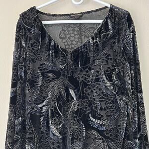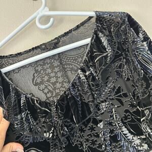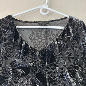 Women’s Susan Lawrence Long sleeve black burn out Black Velvet Shirt top blouse. Ruffle around neckline