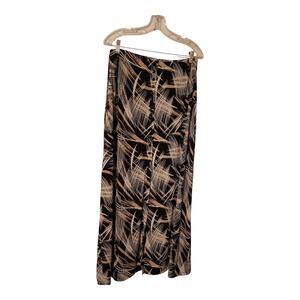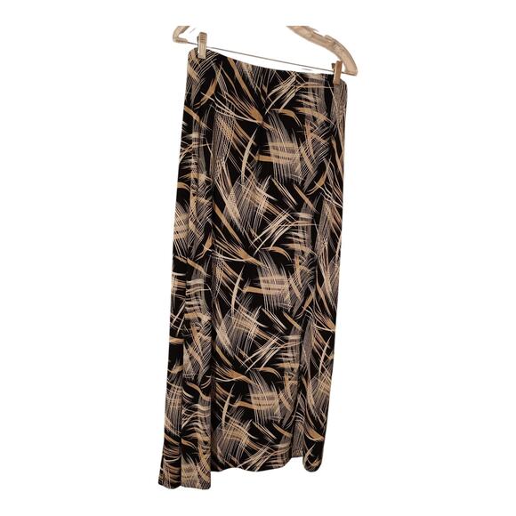Susan Lawrence Black Gold And White Print Maxi Skirt Front Split Women's Size XL