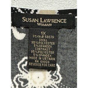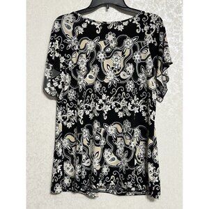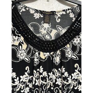 Susan Lawrence Black & White Floral Paisley Embellished Neck Short Sleeve Top 1X