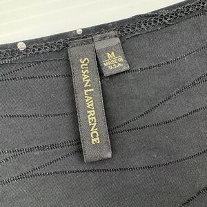 Susan Lawrence Blouse Size Medium Black Silver Sparkle Stretch Top