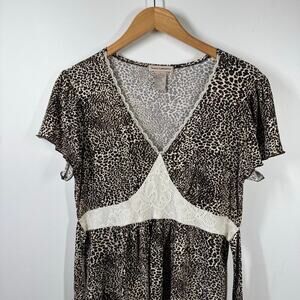 Susan Lawrence Blouse Women L Leopard Lace Babydoll Tie Y2K Bratz Spice Girl