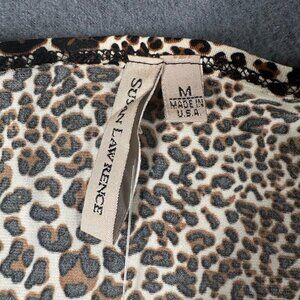Susan Lawrence Leopard Print Top Med 3/4 Sleeve Ruched V-Neck Made In USA