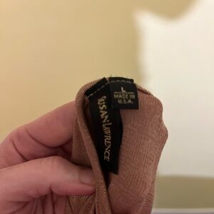 Chic metallic top with a soft rose hue. Ideal for stylish evenings.