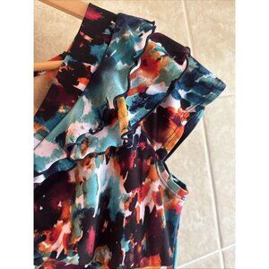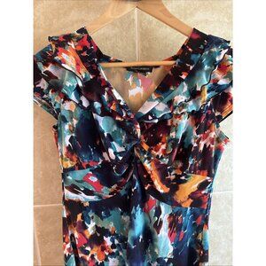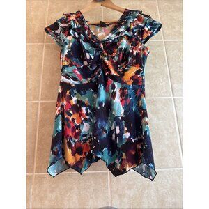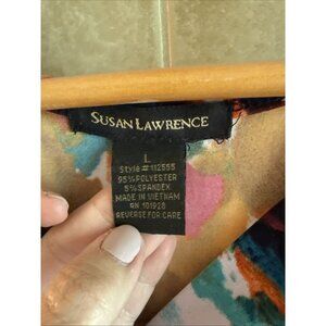 Susan Lawrence Sz Large Abstract Watercolor Floral Stretch Artsy Blouse Top
