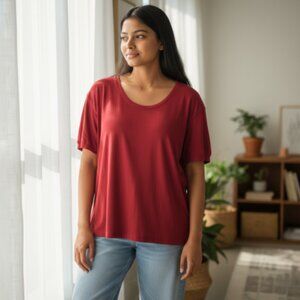 Susan Lawrence Women’s Top Sz 2X Red Scoop Neck Stretch Short Sleeve Blouse