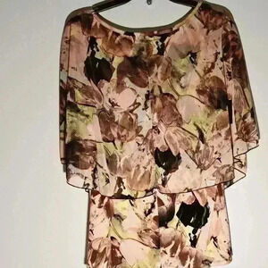Classy top. Perfect for an evening out or casual. Under layer fits like a tank, outer layer is a sewn on cape like sheer top