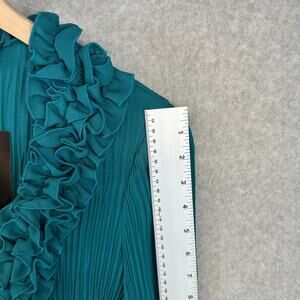 Susan Lucci Blouse Top Womens Medium Teal Green 100% Polyester Pleated Ruffled