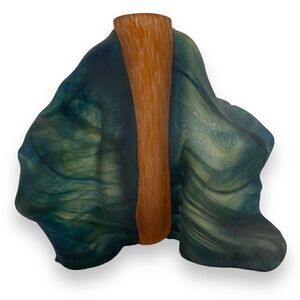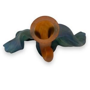 This amazing studio art glass piece is in excellent pre-owned condition. There are no chips or cracks. It is hand blown by Susan Rankin, a successful well known Canadian a glass blower and artist. Based on information I received directly from her, it is part of her Winged Vessel series which consisted of bud vases and scent bottles. The signature is faint, but It is signed and dated ‘97 on the bottom. The wings on the vase have amazing movement and do look like they’re floating in the wind! It is approximately 6” tall and 7” wide.
