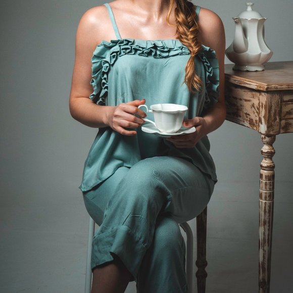 Luxury Pajama Set. Light Blue. Material: Soft, Cotton. Made in Colombia.