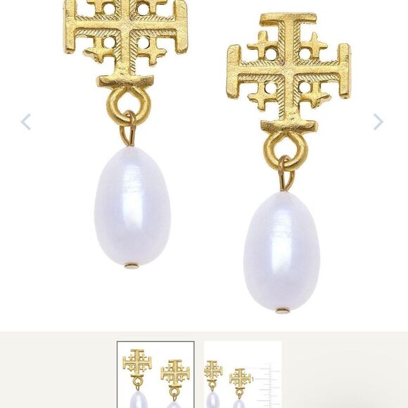 Susan Shaw Jerusalem Gold and Pearl Cross Drop Earrings