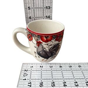 Susan Winget Cracker Barrel Rooster Mug Set x2 Red Poppy Farmhouse Country
