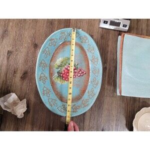 Add a charming touch to your farmhouse-style dining table with this Susan Winget Rustic Grape Oval 16" Ceramic Certified International Platter. The platter has a beautiful turquoise color with red and brown accents that will make your food presentation more appealing. The pottery production technique gives the platter a glossy finish, which enhances the rustic fruit pattern with grapes theme.
