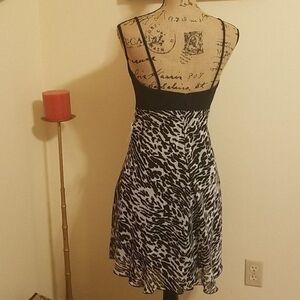 NWT Susan by Night Petite animal print chiffon and black bodice dress, spagetti straps, fully lined. Measurements: 13" lying flat at empire waist, Length 34". Perfect for a night out on the town. Excellent new condition, smoke free home, ships next day. All eBay terms apply. All sales final. Thank you for checking out my closet!