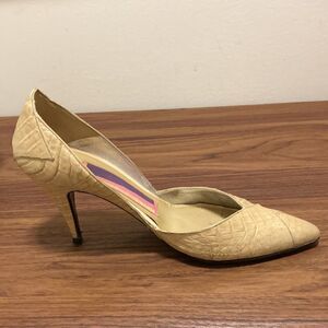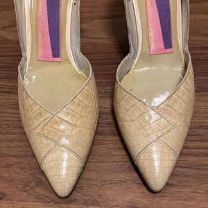 Susan Bennis Warren Edwards Handmade D’Orsay Pumps in Beige Embossed Leather.