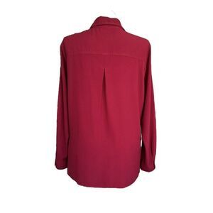 Susan Graver Artisan Women's Red Beaded Collar Button Long Sleeve Blouse Size XL