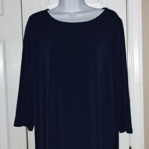 Susan Graver Everyday Navy 3/4 length sleeve tunic with slit Sz M