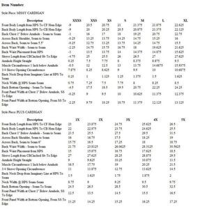 Length: missy length 20-1/2" to 22-5/8"; plus length 23" to 26-1/2"
