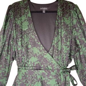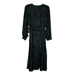 Susan Graver Occasions Black & Green Wrap Midi Dress Sz XLP Wedding, Elegant