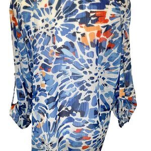 Susan Graver QVC Tunic Top Size Small Sheer Lace-up Blue
