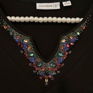 Color: Black with multicolor beaded and rhinestone embellishments at neckline