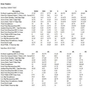 Length: missy length 27-1/2" to 29-5/8"; plus length 29-1/2" to 31-1/4"
