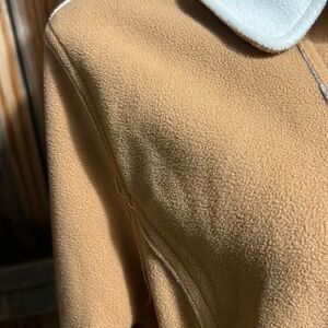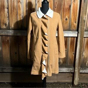 Susan Graver coat faux suede ruffle pockets tan cream Med FIRM on PRICE