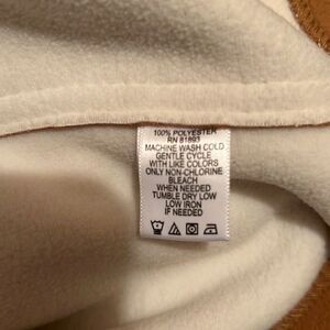 Susan Graver coat has a zip closure and a waterfall ruffle in front, faux suede, has pockets and in a tan/cream colors