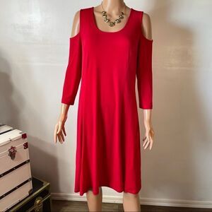 Susan Graver Red Cold Shoulder Dress MEDIUM
