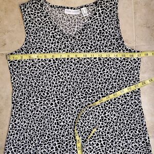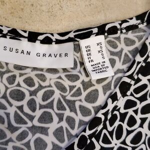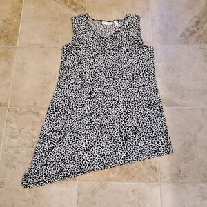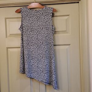 In like new condition no flaws. Black and white design. V neck with asymmetrical hem. Armpit to armpit measures about 17 inches and it is about 29 inches long. Feel free to ask questions and make offers