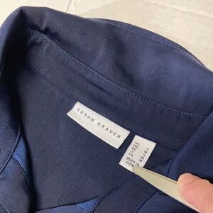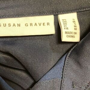 Susan Graver, gorgeous blue top. It says it’s a small but I believe it runs larger than a small. 97% polyester, 3% Spandex. My dress form measures 40” in bust, 31” waist, and 41” hips. Please see approximate measurements in pictures before purchasing. Use your own judgment as to the fit. Send me an offer. I will either accept or counter!
