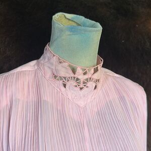 This elegant pink women's top features a delicate design perfect for any occasion. The soft pink color adds a touch of femininity and style to your wardrobe. Shoulder pads. Some of the wrist batting is separating as shown in last photo.