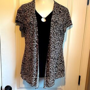 Chic top with black and brown pattern. Ideal for versatile styling. Size Large Nice shape!