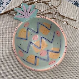 Susan Painter Pineapple Shaped Serving Dish Bowl Handpainted Eclectic Rare