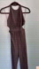 Chic black halter jumpsuit by Susana Monaco. Features a stylish tie waist and wide-leg design. Lightweight fabric. One of the snaps pulls through the fabric (see photo) but does not affect wear. See photos of measurements