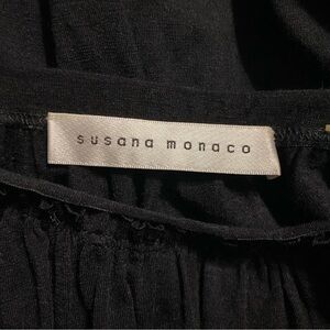 Susana Monaco Womens Medium Black Wool Blend Smocked Stretch A Line Dress in good used condition. No stains, tears or rips.