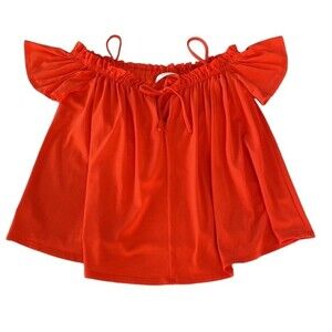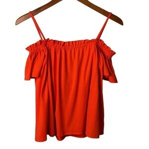 Susana Monaco Cold Shoulder Knot Front Ruffle Trim Blouse Flutter Sleeve Vibrant