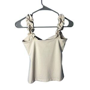 Elegant cream blouse with ruched straps. Soft and stylish design. Perfect for any occasion.