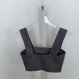Cropped fitted tank with wide straps in a gray stretch faux suede