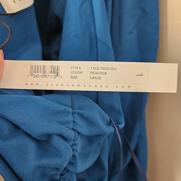 Susana Monaco Dress One Shoulder Ruched Sides Peacock Tulip Hem Mini Cocktail