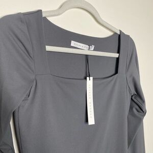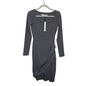 Susana Monaco Fitted Tulip Hem Long Sleeve Asymmetric Dress Mini Small Gray